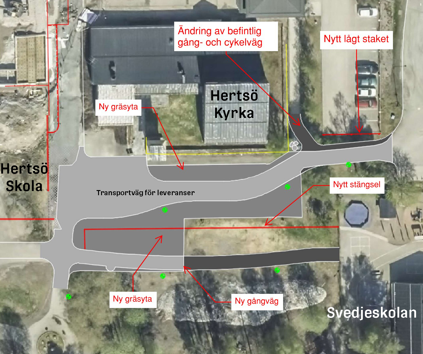 Vi bygger en gångväg från Svedjeskolan för att skolbarnen ska få en säkrare passage när de ska gå till Hertsöskolans matsal.