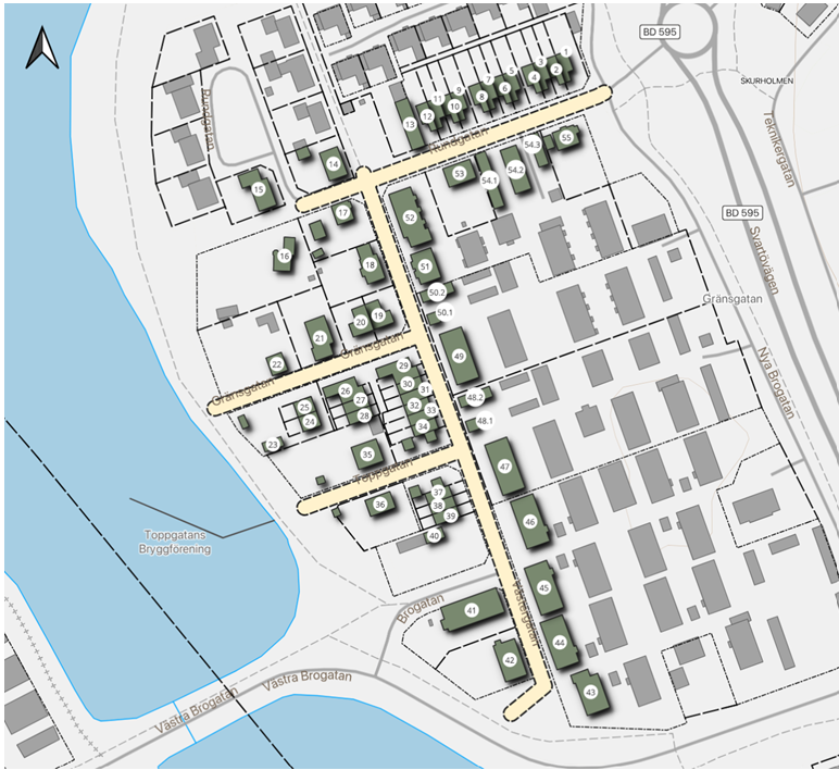 Förra säsongen arbetade vi längst ned i rundeln på Rundgatan på västra Skurholmen. I år färdigställer vi jobbet. Lumire arbetar också i området.