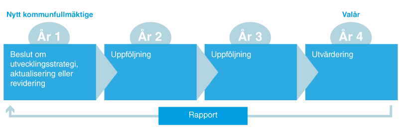 Resultatet av utvärderingen presenteras för det nya kommunfullmäktige som tar ett beslut om PLANERINGSSTRATEGIN och om något behöver ändras.