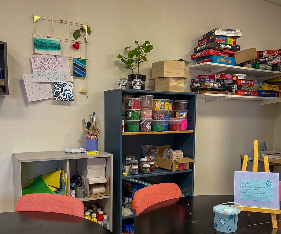 Här finns många häng-ställen där du kan chilla, lära känna nya människor, umgås med dina vänner eller ta det lugnt själv. Vi har ett rum med avslappnad miljö och stor tv, möjlighet att spela tv-spel på storbild via vår projektor, biljardbord, sällskapsspel, pysselhörna och ett schysst fik.
