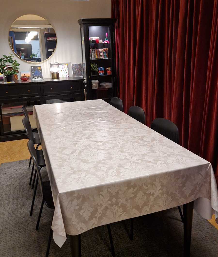 - Vi hänger av oss ytterkläder och skor när vi kommer. Även västar.
